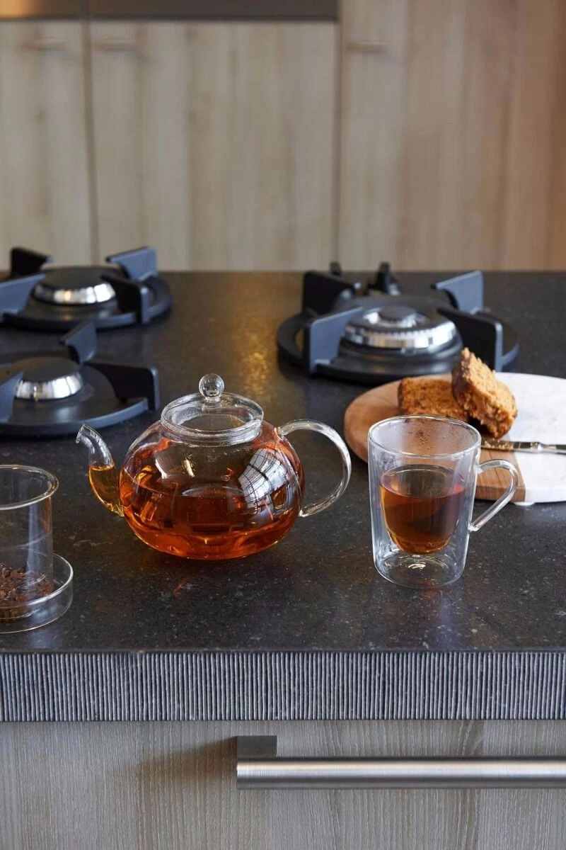Met het uitneembare theefilter kun u gemakkelijk losse thee en kruiden gebruiken voor het zetten van uw thee of het bereiden van tisanes ofwel kruidenthee. Zo kunt u uw thee op smaak brengen met verse munt, kamille of gember. Of doe parten citroen in het filter en serveer na de maaltijd heet water met citroen als digestief. De fijne openingen in het theefilter zijn zo klein dat alle theeblaadjes in het filter zullen achterblijven bij het uitschenken. Uiteraard kunt u het filter voor losse thee ook uit de theepot halen en deze gebruiken met losse papieren theefilters of uw favoriete voorverpakte thee in theezakjes.